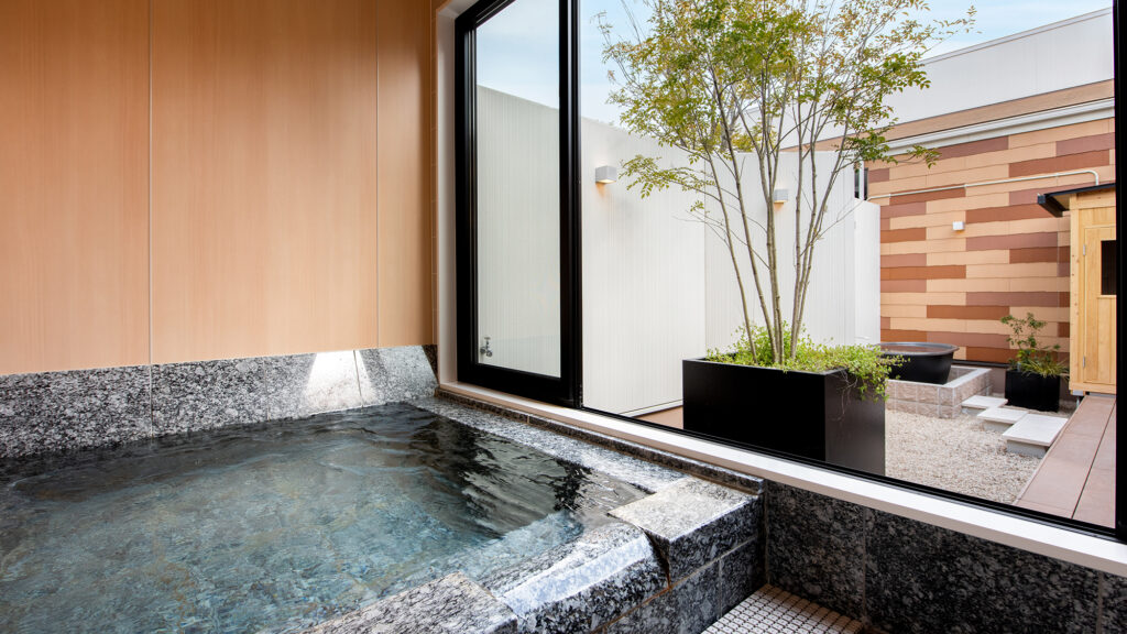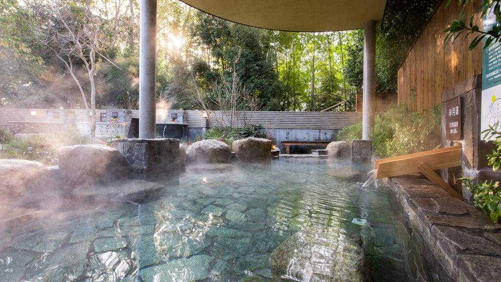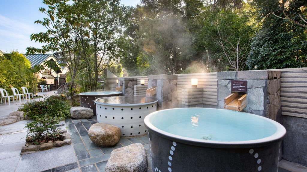 露天風呂は、西日本でも希少な「ナトリウム・カルシウム硫酸塩泉」で、“傷の湯”として親しまれ、乾燥や肌荒れをやさしく癒してくれます。